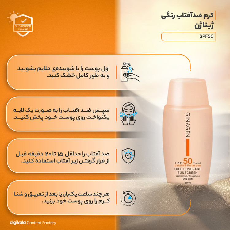 کرم ضد آفتاب بدون رنگ ژیناژن مدل SPF50 محافظ UVA ،UVB، ضد آب، ضد حساسیت، مناسب پوست چرب و مختلط حجم 50 میلیلیتر