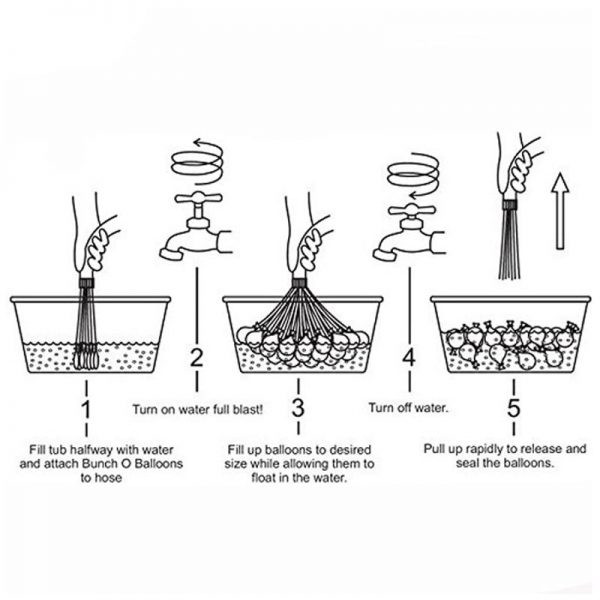 در داخل این محصول 3 دسته بادکنک 37 عددی قرار دارد که شما می توانید هر دسته را به شیر آب متصل کرده و پس از پر شدن بادکنک ها توسط آب، می توانید آن ها را به سمت یکدیگر پرتاب کنید.