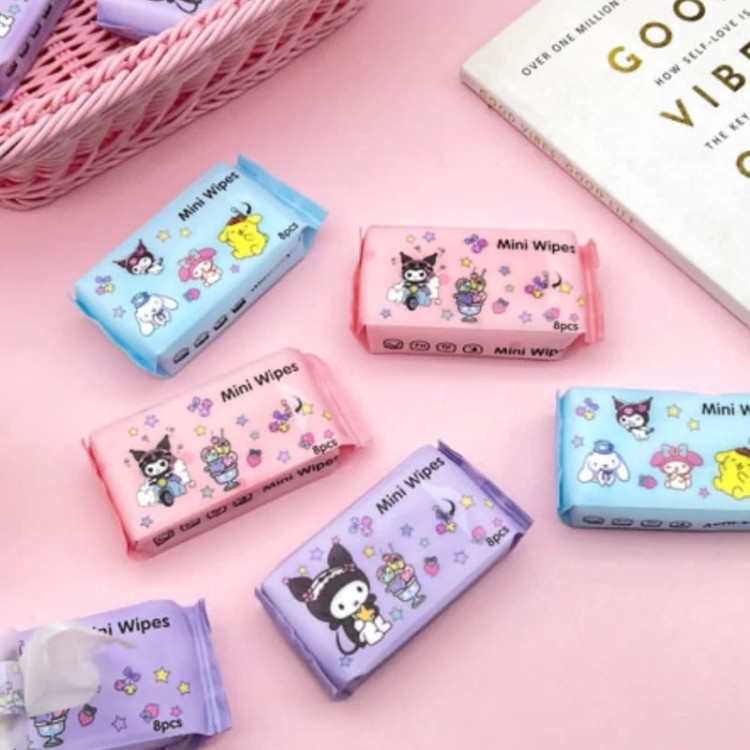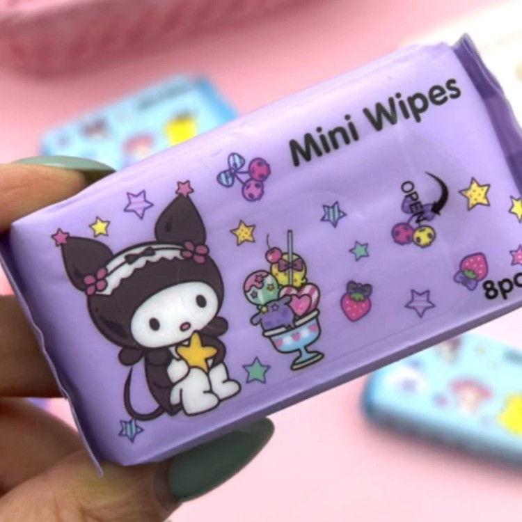 مینی دستمال مرطوب جیبی پک 8 عددی طرح کرومی